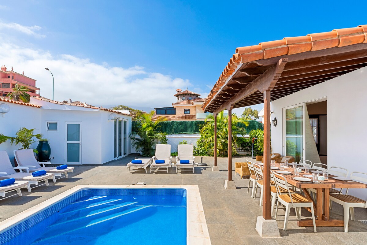LOS CRISTIANOS - Villa with private heated pool and saline filter, barbecue, air conditioning, ceiling fans, private parking, 600 mb fiber optic internet, 75 'TV, netflix, international channels and all the necessary equipment to enjoy the best vacations. Come to THE DREAMS !!! Ask about our personalized services of cook, cleaning, excursions / boat rental and any need you may demand! NÚMERO INSCRIPCION REGISTRO GENERAL TURÍSTICO: 2022-T6484 Signatura: VV-38-4-0094895 Inversiones Ditesa SL