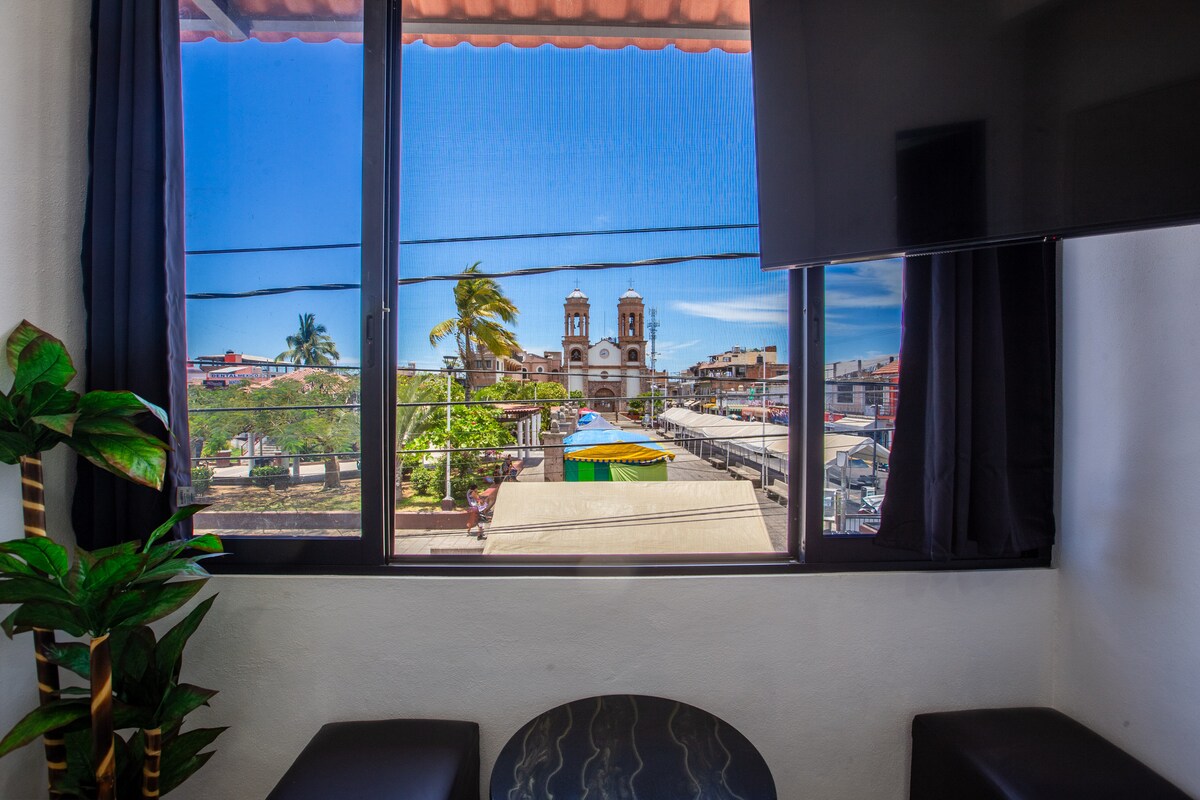 Predivan apartman sa 1 spavaćom sobom i 2 kupatila u novoj luksuznoj zgradi paviljona, koja se nalazi u srcu starog grada Puerto Valarte. 4. sprat sa sunčanim balkonom i dnevnim boravkom. Nalazite se u srcu romantične zone sa restoranima, galerijama, barovima i muzičkim mestima. Bez obzira na to da li želite da idete na plažu, Malecon ili jedan od mnogih kafića, sve je u neposrednoj blizini. Idealno za 2-4 osobe. Uključuje parking (što je teško doći ovde!) za slučaj da imate automobil za istraživanje ovog područja.