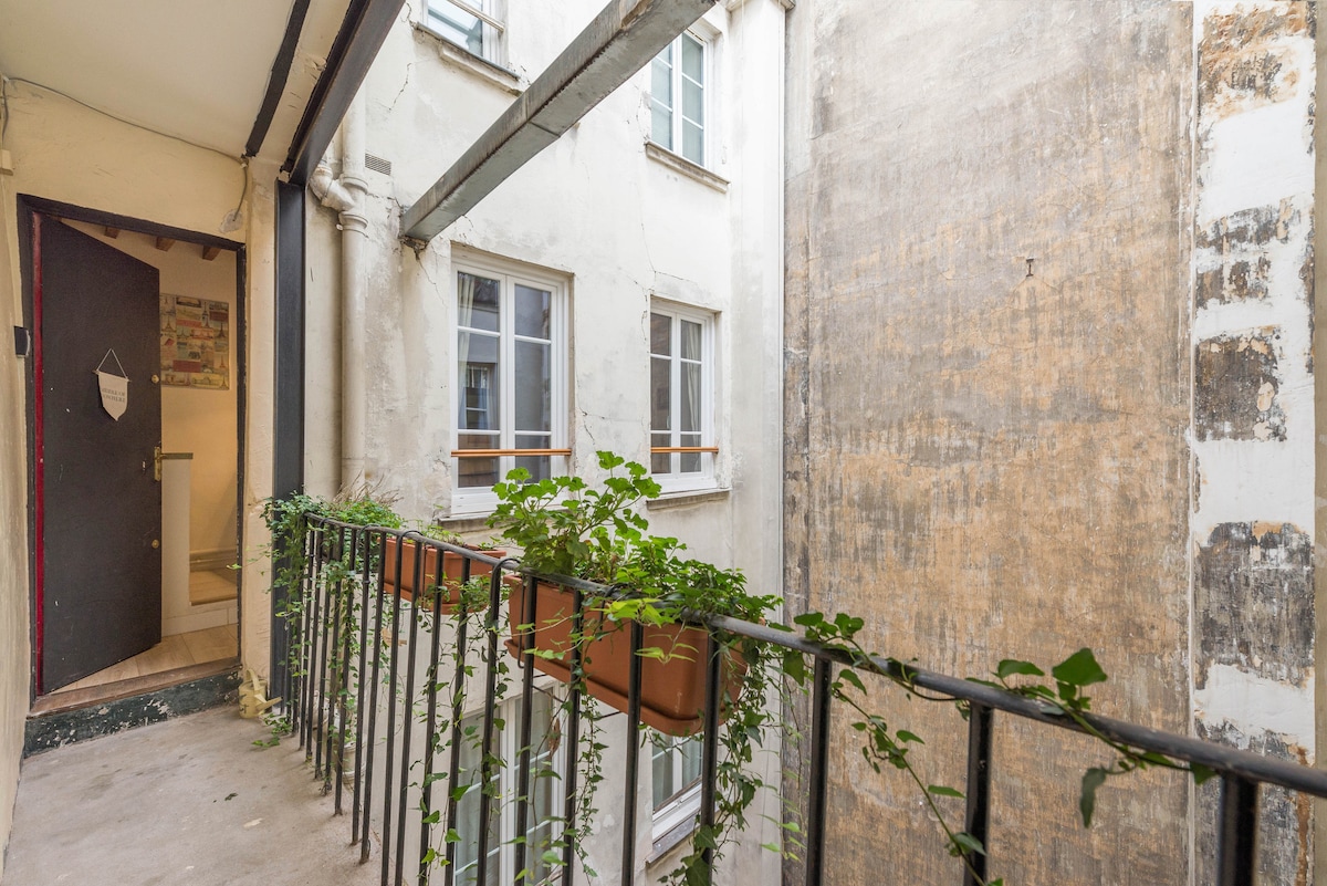 Elegantni Marais 1BR s pogledom na privatnu baštu