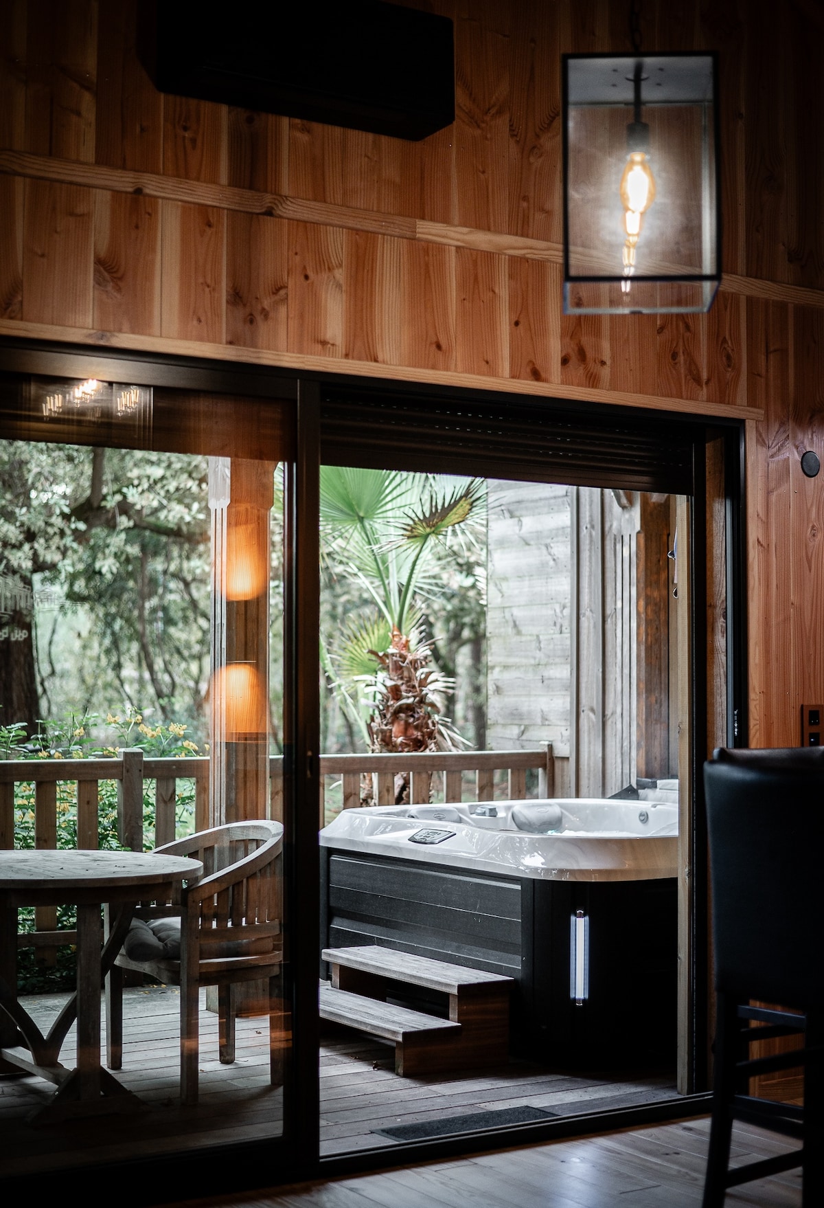 Divna drvena brvnara izgrađena od tropskih i egzotičnih materijala u srcu Andernos-les-Bainsa, smještena u privatnoj bašti od 400 m2 skrivenoj i okruženoj šumarskim okruženjem. Brvnara je u neposrednoj blizini zaliva Arkašon (5 minuta vožnje), 30 minuta vožnje od Kap Ferreta, 3Omin od Bordeaux Mérignac i samo 8 minuta vožnje biciklom od centra grada. U blizini su beskrajne biciklističke rute.