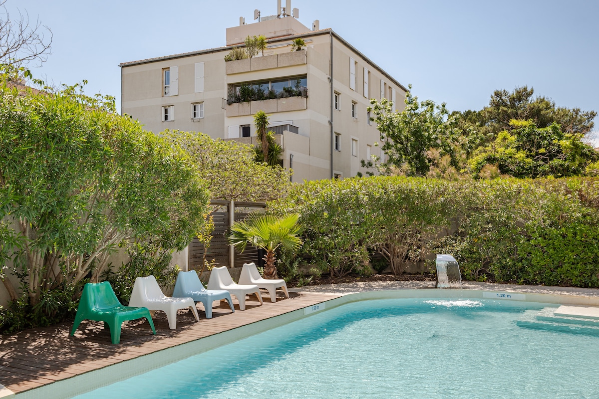 Svijetli studio u hotelskoj rezidenciji sa bazenom, kratka šetnja do mora. Uživaćete u privatnom balkonu s pogledom na bazen i vrlo mirnom šumovitom parku, idealnom za kafu na suncu ili opuštanje na kraju dana. Studio je dizajniran za vašu udobnost: klima-uređaj, Wi-Fi, posteljina i peškiri su obezbijeđeni, sve je tu za prijatan boravak u Marselju. Odlično za boravak uz more, poslovno putovanje ili događaj na stadionu velodrom ili u parku Čanot.