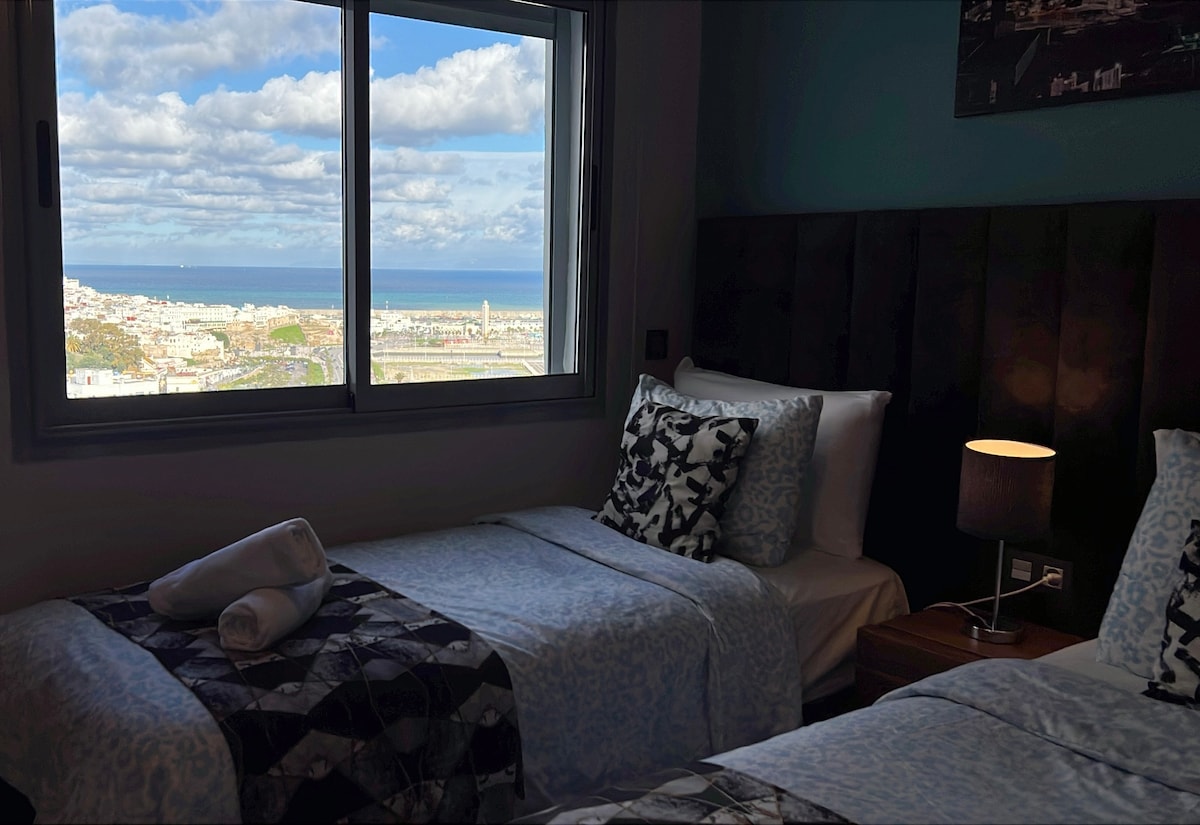 Dobro došli u naš luksuzni apartman, idealno smešten u Tangeru🌇. Naša porodična kuća nudi odličnu lokaciju za istraživanje grada. Uživajte u udobnosti i luksuzu našeg doma sa prostranom dnevnom sobom🛋️, terasom☕, opremljenom kuhinjom🍴 i elegantnim spavaćim sobama🛌. Smislili smo sve što je potrebno da vaš boravak bude prijatan i nezaboravan😊. Rezervišite sada za nezaboravne trenutke! 🎉