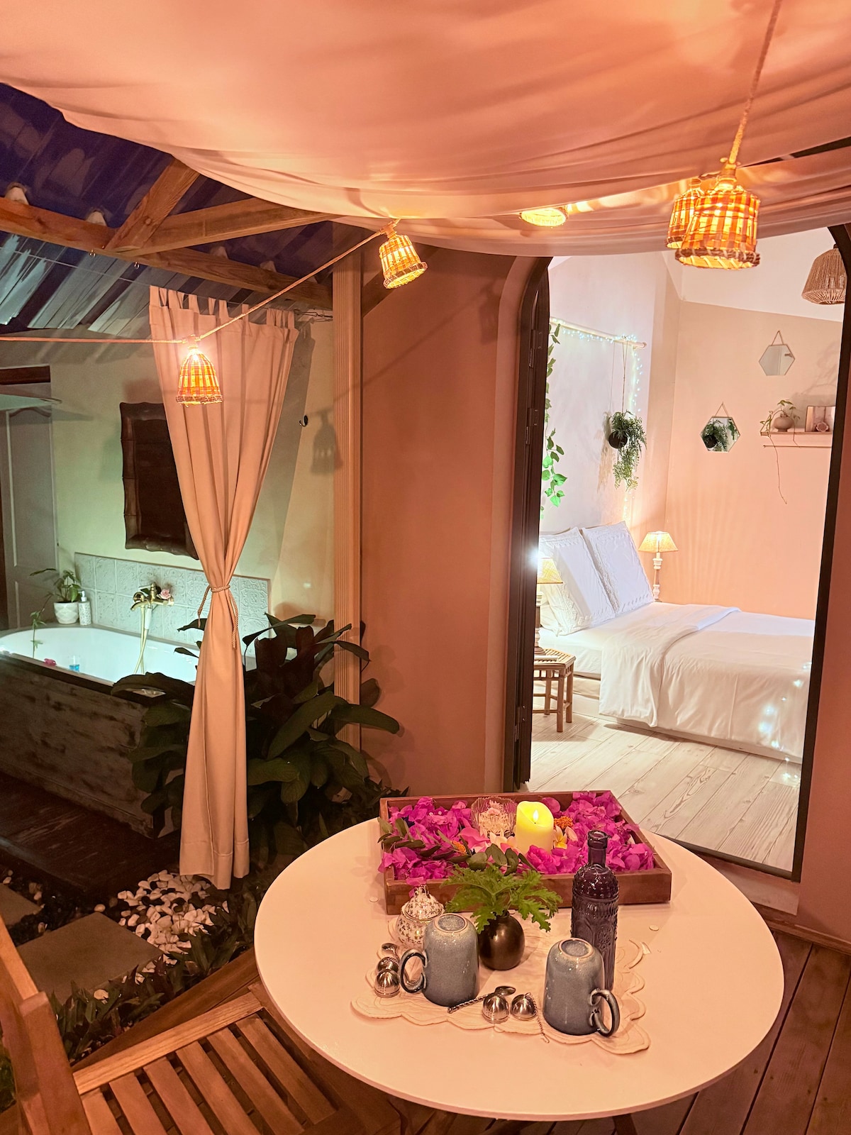 Chic Shack Cabana est une cabane insolite exclusivement conçue pour les couples en quête d'intimité et de romantisme. Nichée au cœur d'une luxuriante végétation, cette retraite romantique est l'endroit idéal pour une escapade en amoureux. Venez vivre une aventure unique et découvrez la magie de Chic Shack Cabana. Réservez dès maintenant et préparez-vous à vivre une expérience inoubliable dans notre Cabane Insolite.