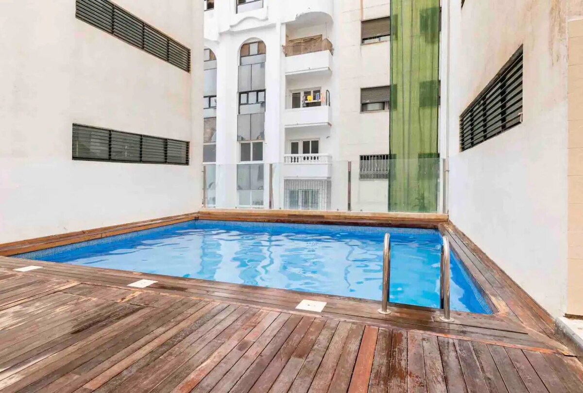 Premijum apartman na ivici Tangera, sa elegantnim apartmanom, modernim dnevnim boravkom, američkom kuhinjom i terasom. 2 minuta hoda do plaže i u rezidenciji sa bazenom, savršeno za udoban i elegantan boravak pored mora. 📍 Usluga prevoza sa aerodroma/železničke stanice je dostupna na zahtev (dodatna naknada nije uključena u cenu) ⚠️ VAŽNO OBAVJEŠTENJE U skladu sa Zakonom br. 70-03 Kraljevine Maroko, NIJE nam dozvoljeno da ugošćavamo nevenčane parove u kojima je bar jedna osoba Marokanac.