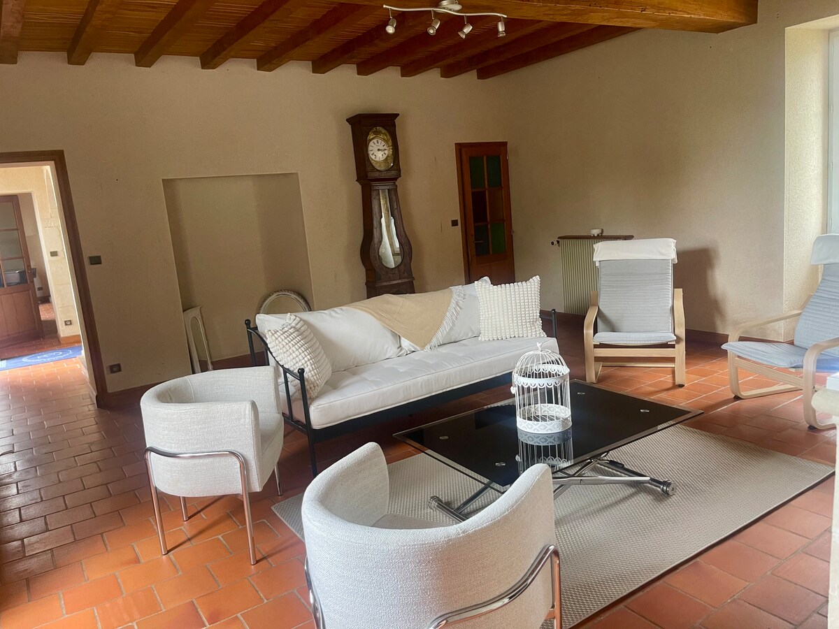 Smještena 5 minuta od centra grada Saumur, mala plava kuća vas poziva na romantičan odmor ili miran boravak kao duo (moguće je 2 + 1 dijete). Ova kuća od sedre, tipična za ovo područje, kombinuje modernu udobnost i autentičnost. Dopustite da vas zavede njegova topla atmosfera i umirujuća atmosfera. Napolju vam hidromasažna kada „Samo za vas” obećava trenutke potpunog opuštanja. Kada stignete, čeka vas boca lokalnog pjenušca!