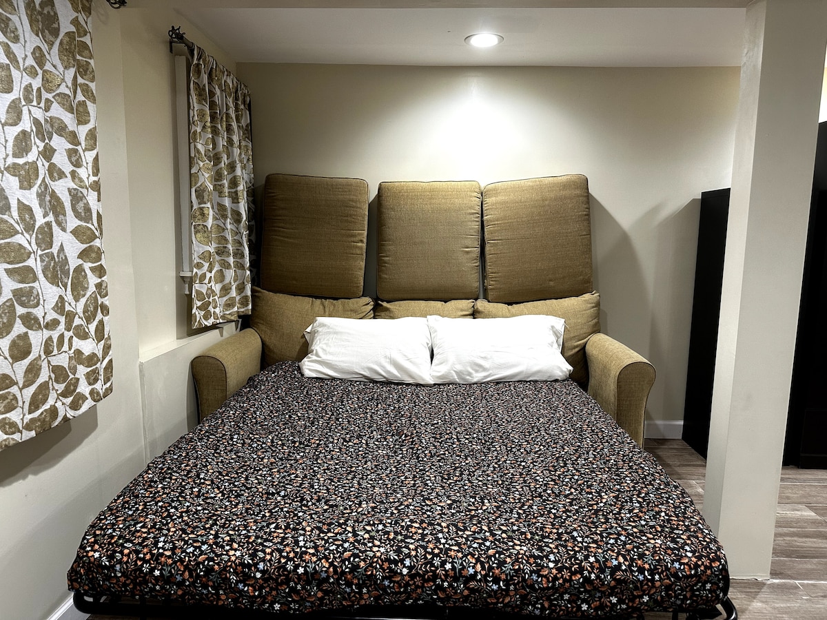 Udoban i bezbjedan studio sa privatnom digitalnom bravom u oblasti Hantington. Premium KABLOVSKA TV i svi opisani sadržaji su uključeni. Tu je aparat za kafu Keurig sa šlagom i šećerom pa možete da uživate. Udoban studio takođe ima toster, mikrotalasnu pećnicu, frižider, sopstveno kupatilo i malu čajnu kuhinju u kojoj možete da uživate u sopstvenim obrocima. Imate udoban bračni krevet.