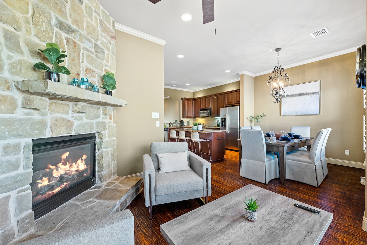 Moderna kuća u nizu smeštena u okviru kompleksa The Shops at Legacy, što znači da se nalazite u samom centru restorana, kafića, prodavnica i zabavnih sadržaja – nema potrebe za pešačenjem ili vožnjom. ** unutar tržnog centra The Shops at Legacy – izađite napolje ** jednostavan pristup autoputu Dalas Nort, autoputu Sem Rejbarn (121), autoputu Predsednik Džordž Buš i autoputu US-75 ** 5 televizora sa ravnim ekranom i brzi Wi-Fi ** udoban kamin ** dva privatna balkona sa pogledom ** potpuno opremljena kuhinja ** pranje veša u smeštaju ** Praktično parking mesto je na raspolaganju