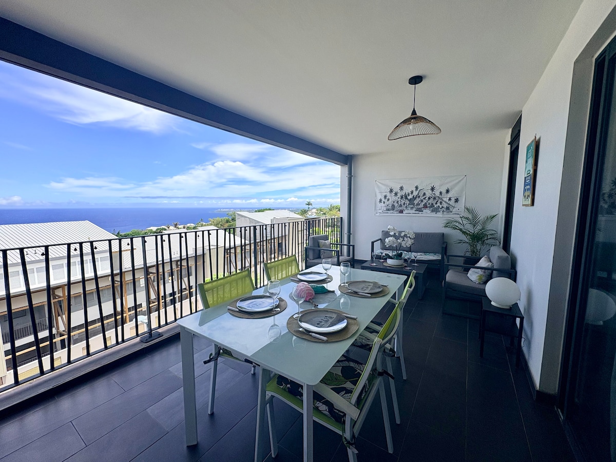 Cette maison T3 avec piscine bénéficie d'une vue exceptionnelle sur l'océan et la ravine du Bernica, dans un quartier très calme et paisible L'aménagement offre un confort optimal avec un mobilier de qualité. La terrasse spacieuse de 50m2 offre un havre de paix avec sa vue imprenable sur l’océan et la baie de Saint Paul. A juste 15 mn des plages et proche de la route des Tamarins La piscine spacieuse et clôturée donne sur la mer. Stationnements à l’extérieur et entrée indépendante.
