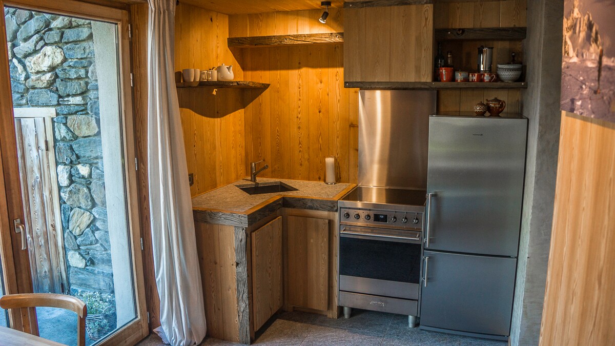 Newly finished modern ground floor suite in local family house with sunny patio/garden/bbq access on the uphill edge of the tiny quiet hameau of Ventelon. One bedroom with queen size bed and single bunk with additional single bed/sofa in living area (baby bed/high chair also available) with views to the high summits. Fully equipped kitchen with induction cooking/oven. Perfect base for direct ski touring/hiking/paragliding access to the fabulous terrain on the sunny side of the valley.