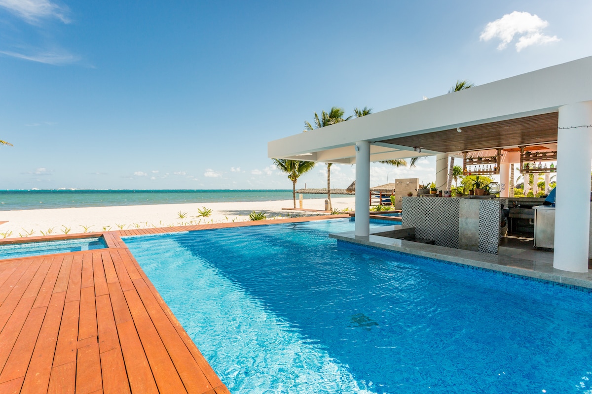Glavni apartman uz okean sa velikim prozorom. Miran prostor, savršen za opuštanje ili rad na daljinu s izuzetno brzim internetom (150+ Mbps). Ručno izrađen dizajn enterijera od strane meksičkih zanatlija stvara autentičnu i prijatnu atmosferu. Uživajte u dušecima od memorijske pjene i 100% pamučnim čaršafima za maksimalnu udobnost. Samo 25 minuta od aerodroma i 10–15 minuta od centra Kankuna. Okruženi tropskom vegetacijom, izlascima sunca u okeanu, palmama, zvjezdanim nebom, zvijezdama padalicama, pelikanima i flamingosima.