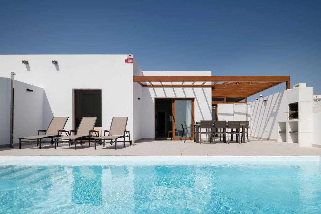 Vila renovirana u julu 2025. sa spektakularnim pogledom na okean, Fuerteventuru i ostrvo Lobos. Ima 4 spavaće sobe, 4 kupatila, 2 privatna bazena (jedan je zagrevan), brzi Wi-Fi, opremljenu kuhinju, prostor za pranje veša, baštu, prostor za roštilj, stoni tenis i petank. Idealno za porodice ili parove koji traže privatnost, udobnost i opuštanje u ekskluzivnom okruženju Lanzarotea.