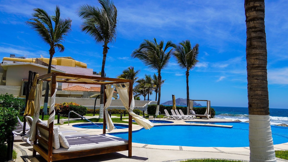 Opustite se u ovom jedinstvenom i mirnom odmoru u prelepom novouređenom kondominijumu na plaži gde ćete uživati u prelepim zalascima sunca u Mazatlanu! Ima 2 spavaće sobe, 2 kupatila, pametni TV, pametni TV , internet, internet, peškire za plažu, peškire za plažu.. potpuno opremljeno! Marina del Sol ima dva bazena! :) NAPOMENA: Na istom spratu imamo još jedan jednako kondominijum za 6 osoba (samo 2 kondominija po spratu), tako da može da bude do 12 osoba koje se spajaju sa 2 :)