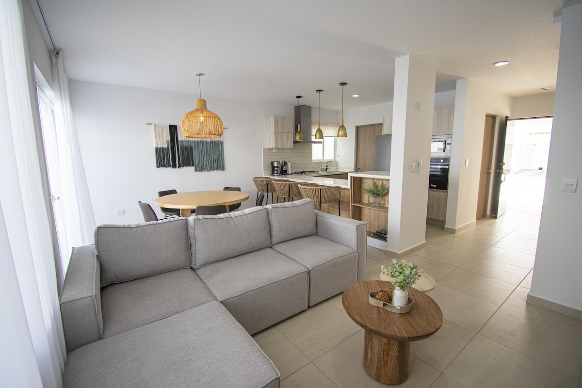 Uživajte sa porodicom u ovom modernom domu, gdje je mir glavni lik. Nalazi se u blizini Zona Marine i Cerritos, nekoliko minuta od vodenog parka Mazagua, Plaja Brujas i odmarališta RIU. Opremljen pametnim televizorima, roštiljem, bazenom, dječijim igralištem i parkingom ispred vrata, u privatnoj zajednici sa danonoćnim obezbjeđenjem. Opustite se u ovoj kući sa hotelskim sadržajima, samo nekoliko minuta od Zlatne zone, Malekona i Kongresnog centra. Osećaćete se kao kod kuće!