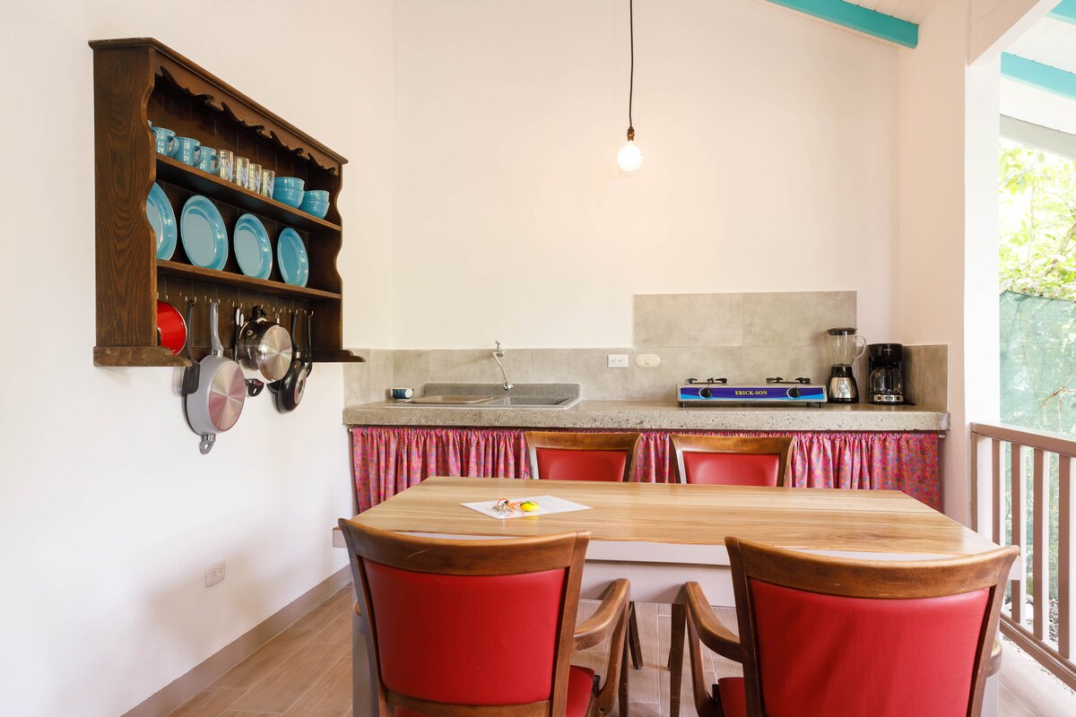 Ovaj objekat je jedan od rijetkih u Puerto Vijehu koji se nalazi direktno na plaži! (Nema ulica koje treba preći...samo vaša prelepa bašta kroz koju možete da prošetate radi direktnog pristupa plaži!). U vilama Serenidad ćete zaspati i probuditi se uz morski povetarac i zvukove; uživajte u praktično privatnoj plaži; + i dalje ste u neposrednoj blizini živahnog i autentičnog grada Puerto Viejo (udaljeni smo oko 15-20 minuta hoda od plaže ili 10 minuta vožnje biciklom). Posvećeni smo tome da vaš odmor bude spektakularan!