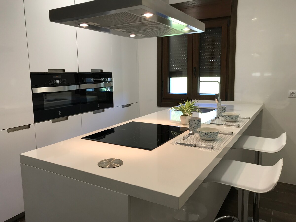 OBSEQUIO: Kit desayuno (ver foto)+dulce casero+ botella albariño+leña Ponemos a vuestra disposición este capricho de casa NUEVA en las afueras de Vigo. Es una casa de 55 m. La casa tiene jardin privado solo para vosotros de unos 200 m totalmente cerrado y con total intimidad. Tiene parking exclusivo dentro de la finca. Internet-Wifi por fibra 600Mb, ideal para teletrabajar. Localización perfecta para hacer de la casa la base para excursiones por Galicia. La autopista a 5 min.