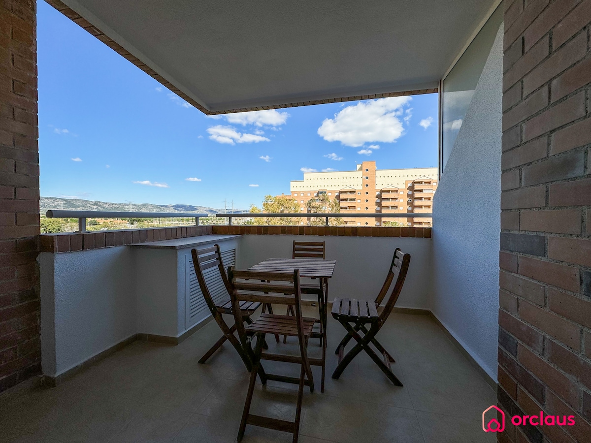 En Oropesa del Mar, Magic Word - Marina D’Or, 4 sprata sa pogledom na okean. Veliki dnevni boravak sa kaučem na razvlačenje, glavna spavaća soba sa bračnim krevetom, spavaća soba sa dva odvojena kreveta, velika terasa, jedno kupatilo, potpuno opremljena kuhinja, bazen za odrasle i još jedan za decu. 4 sprata okrenuta ka severu, tako da leti možete da uživate na terasi ceo dan. Klima-uređaj i Wi-Fi. Nalazi se 2 minute hoda od plaže, u blizini barova, restorana, parkova, Merkadone i Aldija.