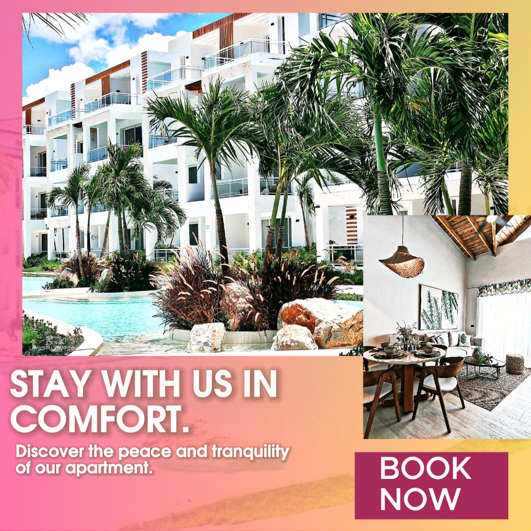 Witamy w naszym ekskluzywnym apartamencie na Dominikanie, zaledwie 5-6 min od bajecznej plaży. Położony w spokojnej okolicy, otoczony basenami i bujną roślinnością. Wnętrza urządzone z elegancją i stylem, zapewniają niezapomniany pobyt. Czekamy na Ciebie, byś mógł cieszyć się wyjątkowymi chwilami odpoczynku w naszym urokliwym miejscu!