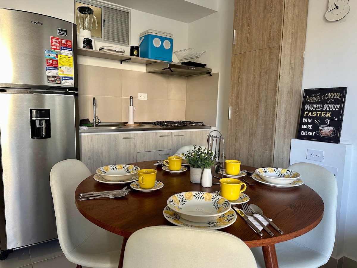 Doživite iskustvo Rodadero Sur na korak od plaže! Pogled na okean i Sijera Nevadu, idealno za opuštanje. Wi-Fi sa optičkim vlaknima i potpuno opremljen stan. 🌴 Uključuje 4 stolice i prenosivi frižider za plažu. • Mini market na prvom spratu. 📍 Tiho stambeno područje, 14 minuta od aerodroma. ✨ Savršeno za porodice ili parove koji traže udobnost i dobru lokaciju. 🌴 Santa Marta ima toplu klimu, tako da nema bojlera; tuš je na sobnoj temperaturi.