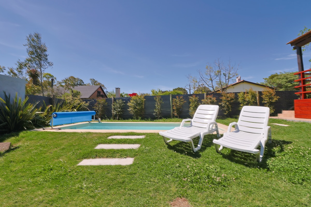 Udobna seoska kuća u šumi Punta Balena. Idealno za bijeg i odmor u prirodnom i vrlo mirnom okruženju. Koraci od Arboretuma Lussich, idealnog za planinarenje, šetnje i uživanje u kafi sa ukusnim kolačem La Čeka. Minutes from Solanas Beach, Tío Tom, Las Grutas, Chihuahua. Imamo ležaljke za sunčanje i suncobran sa zaštitom od uv. Zimi ćemo vas čekati sa Fueguito Engido. Kuća je potpuno opremljena kako bi se osjećali prijatno kao kod kuće.