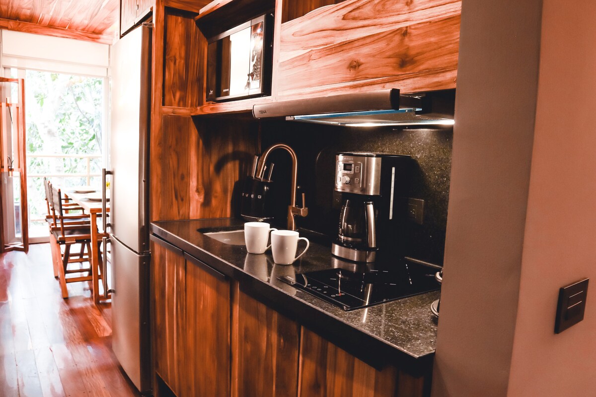 Doživećete udobnost i spokoj u našem prostranom i udobnom APARTMANU ALUNA. Uživajte u opremljenoj kuhinji, bračnom krevetu, Smart TV-u, Wi-Fi mreži od 500 Mbps i terasi sa privatnim đakuzijem sa pogledom na prirodu. Odmorite se u ovom mirnom okruženju, u sklopu kompleksa KUĆA U DŽUNGLI, koji se nalazi u privatnom dijelu iznad 38. ulice, samo 2 bloka od Pete avenije, plaže, restorana i supermarketa.
