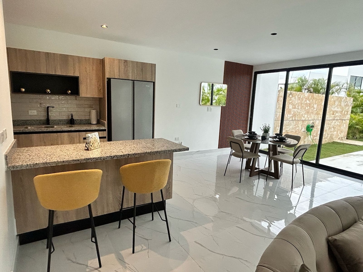 Hermosa villa en playa nueva romana con 4 Habitaciones 3 camas queen 1 cama king y 1 cama full está villa tiene todo lo que usted se puede imaginar tener en su casa la cocina está equipada 100% Internet rápido bbq con gas incluido está comunidad tiene playa golf restaurantes como onnosplayanuevaromana súpermercado salón de belleza golf pádel 2 resort y mucho más solo vengan con deseo de disfrutar,,, seguridad 100% tranquilidad Le rento aparte el carrito de golf si así desea