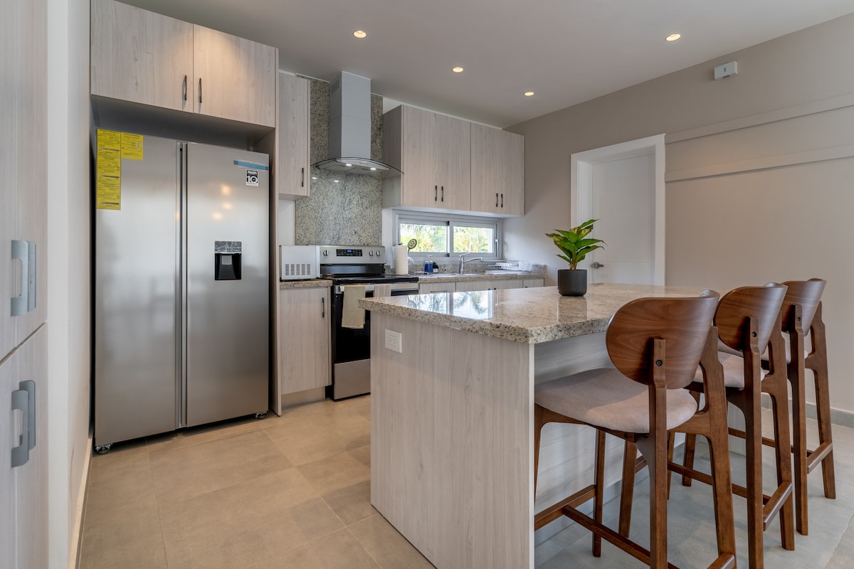 Doživite luksuz u ovom potpuno novom apartmanu u kompleksu Romana South Beach Residential, Plaja Nueva Romana. Nekoliko koraka od plaže, sa brzim Wi-Fi mrežom, kablovskom televizijom, privatnim bazenom, hidromasažnom kadom, dečjim bazenom, teretanom, prostorom za roštilj, spoljašnjim prostorom za obedovanje i uslugama masaže. Savršeno za porodice ili parove koji traže stil, udobnost i savršeno opuštajuće utočište na nenadmašnoj lokaciji na obali.