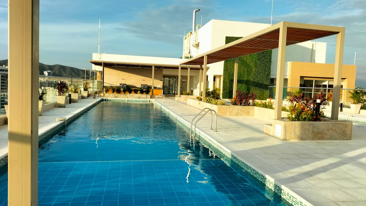 *Potpuno namješten moderan apartman* u Santa Marti, samo nekoliko minuta hoda od plaže Salguero i u blizini El Rodadera, jednog od najpopularnijih turističkih mjesta u gradu. ✨ Posebnosti: bazen na krovu, đakuzi, sauna, tursko kupatilo, igraonica i teretana. VIŠE ⬇️. Zgrada ima besplatan parking za posjetioce, u zavisnosti od dostupnosti. Apartman ima pogled na planine. Bilo da želite da se opustite ili istražite, ovaj apartman je savršena baza za boravak u Santa Marti.