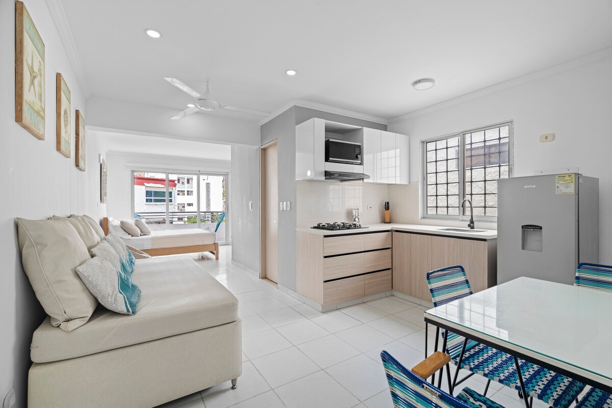 🏖️ Apartment with a private 🛁 jacuzzi, terrace with a 🪢 hammock, 🍳 fully equipped kitchen (air fryer, coffee maker, blender), 🏖️ beach kit included and access to 🏊♂️ 3 swimming pools. Just 100 m from the beach and 10 min from the airport ✈️. Includes 🧴 amenities and 🧼 bath and beach towels. Building features 🏋️♀️ gym, 🛒 mini market, 🚗 free parking, 💇♀️ hair salon, Turkish bath and sauna (extra cost). Close to 🛍️ supermarkets and restaurants. IDEAL PARA ESTADÍAS CORTAS Y LARGAS.