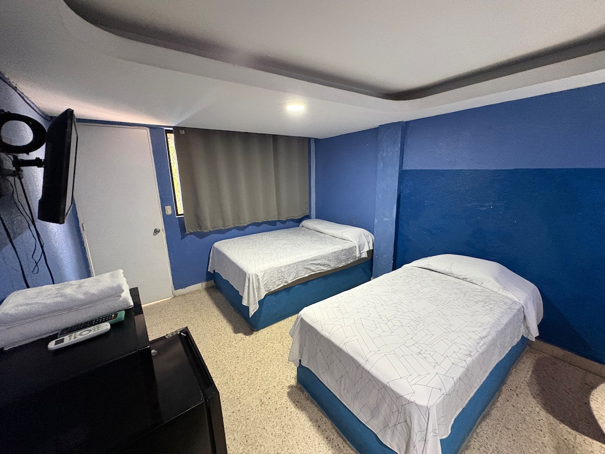 Mali apartman sa osnovnim sadržajima kao što su Wi-Fi, sopstveno kupatilo, 1 krevet za jednu osobu 1 bračni krevet TV sa Amazon Prime Video, HBO Max, mini frižider, mikrotalasna pećnica i radni prostor💻, zajednički bazen, veoma blizu plaže, odmah preko puta Zajednički bazen Ne dozvoljavam kućne ljubimce Moraćete da se penjete stepenicama Pored tržnog centra Galerías Acapulco U blizini ima svakakvih prodavnica i mesta za jelo Dajem samo 2 peškira po rezervaciji Imam 700 utisaka, 90% pozitivnih