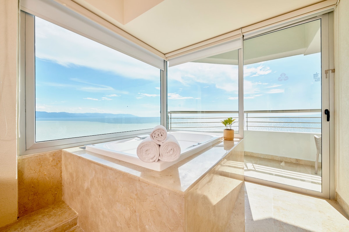 Panoramska soba je idealna jedinica za parove koji traže romantičan i luksuzan prostor. Privatni đakuzi na balkonu sa pogledom na more čini ovaj studio neverovatnom opcijom. Sa brzim Wi-Fi mrežom, plažom, Smart TV-om, mini frižiderom i neverovatnim pogledom na zaliv Puerto Valarta. Dio hotela Marboka, razlog zašto ćete imati pristup većem broju usluga koje pružaju bolje iskustvo.