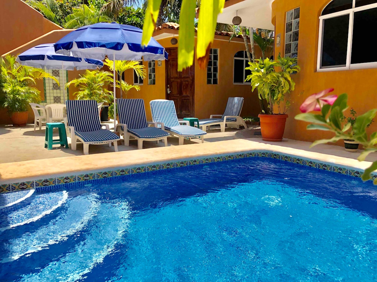 Casa Dos Palmas je prelijepa kuća izgrađena po mjeri sa bazenom na samo nekoliko minuta hoda od plaže, prodavnica i restorana Playa Zicatela. Naš dvosobni stan u bašti je sve što vam je potrebno za vaš sljedeći odmor u Puertu. Prošetajte plažom u ranim jutarnjim satima, idite na surfovanje ili ručajte u našem omiljenom lokalnom kafiću Dans. Opustite se na terasi bazena i uživajte u zvucima okeana.