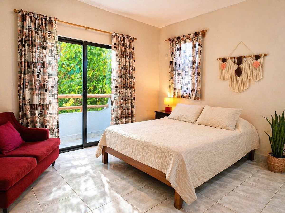 Privatni studio za one koji dolaze da istraže obalu reke i traže lepo mesto za odmor. Idealno za parove, grupe od 3 osobe ili porodicu od 4 osobe. Možete da prošetate do obližnjih mesta kao što su agencije, supermarket, restorani, kafići i plaže. - Pristup plaži u Av. Kolosio, 550 m (8 min.) - Pristup plaži u 48. ulici, 800 m (10 min.) - Praktična prodavnica OXXO, 400m (5 min.) - Peta avenija, 350 m (5 min) - Super Chedraui Selecto market, 800m (12 min)
