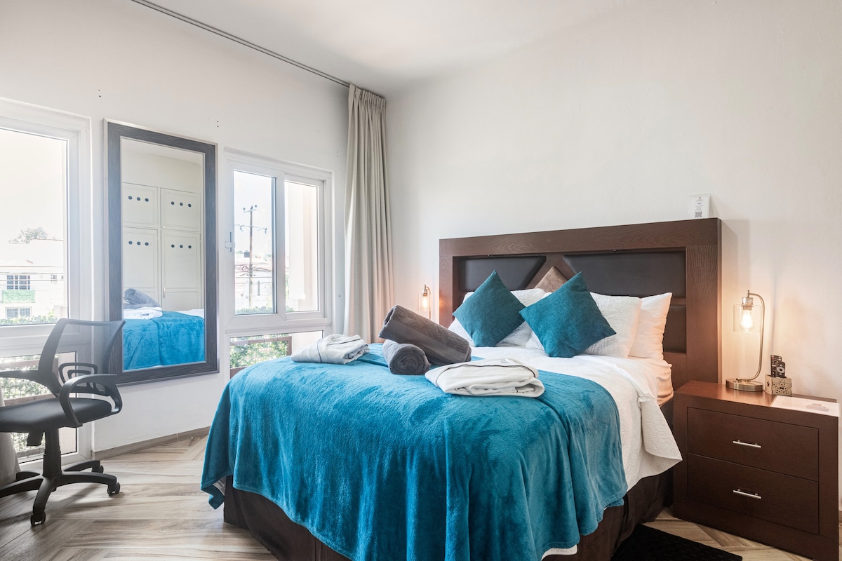 Brand new gorgeous condo with 2 bedrooms with TV, 2 bathrooms, air conditioning, fully equipped kitchen, pool, gym, WIFI, 24/7 security, private parking for 2 cars. Excellent location in a modern upscale neighborhood 5 min from hotel zone. Withing walking distance there is a mall (Plaza las Américas), grosery stores (Superama, 7Eleven), restaurants, coffee shops and bus stop.