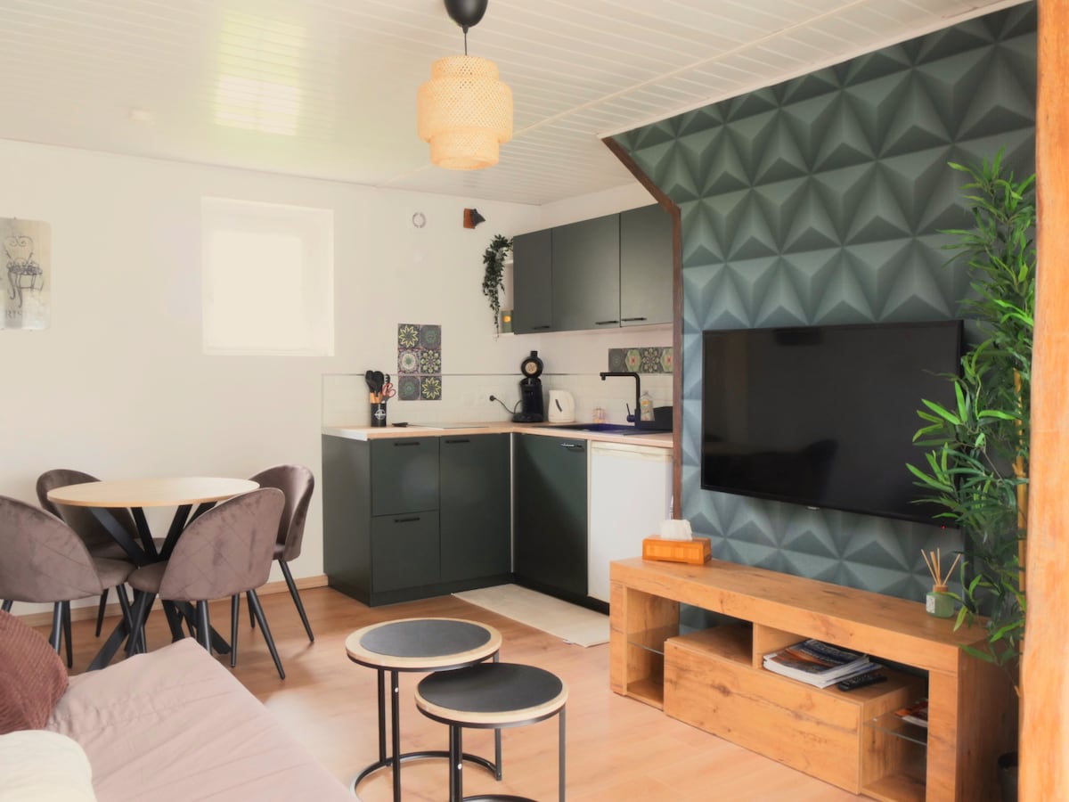 🌱U srcu doline i 4 minuta od plaža , bez pogleda, doživite jedinstven doživljaj u Finistere Nordu. Bretonski smještaj je prostrana i topla gostinjska soba sa privatnim spa centrom sa 6 sjedišta, velikim kupatilom i privatnom terasom Naći ćete krevet od 160×200, aparat za kafu, frižider, kuvalo za vodu ,mikrotalasnu rernu i sef za ključeve za samostalne dolaske. Doručak se dodatno naplaćuje po cijeni od 15. po osobi Vidimo se uskoro😊 🕊Bretonski smještaj