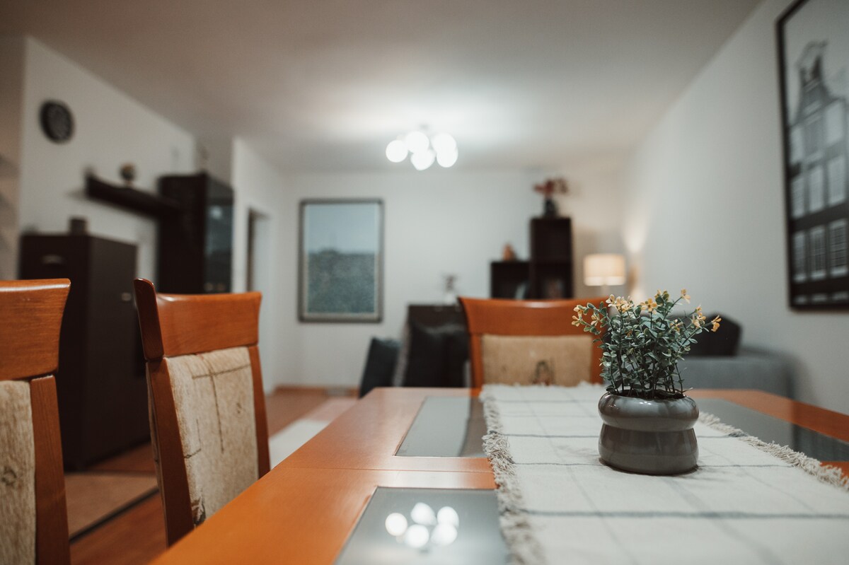 Svijetli i elegantni dvosobni stan u centru Plovdiva, idealan za porodice ili poslovne putnike. Uživajte u potpuno opremljenoj kuhinji, prostranoj trpezariji, udobnim krevetima i modernim kupatilima. Opustite se u dnevnoj sobi ili pijuckajte kafu na privatnom dvorištu. Uključen je besplatan parking na ulici i pristup javnoj ili zajedničkoj teretani. Prošetajte do rijeke Marice, vrhunskih restorana, prodavnica i istorijskih znamenitosti za nekoliko minuta. Savršena baza za istraživanje bugarske kulturne prestonice!