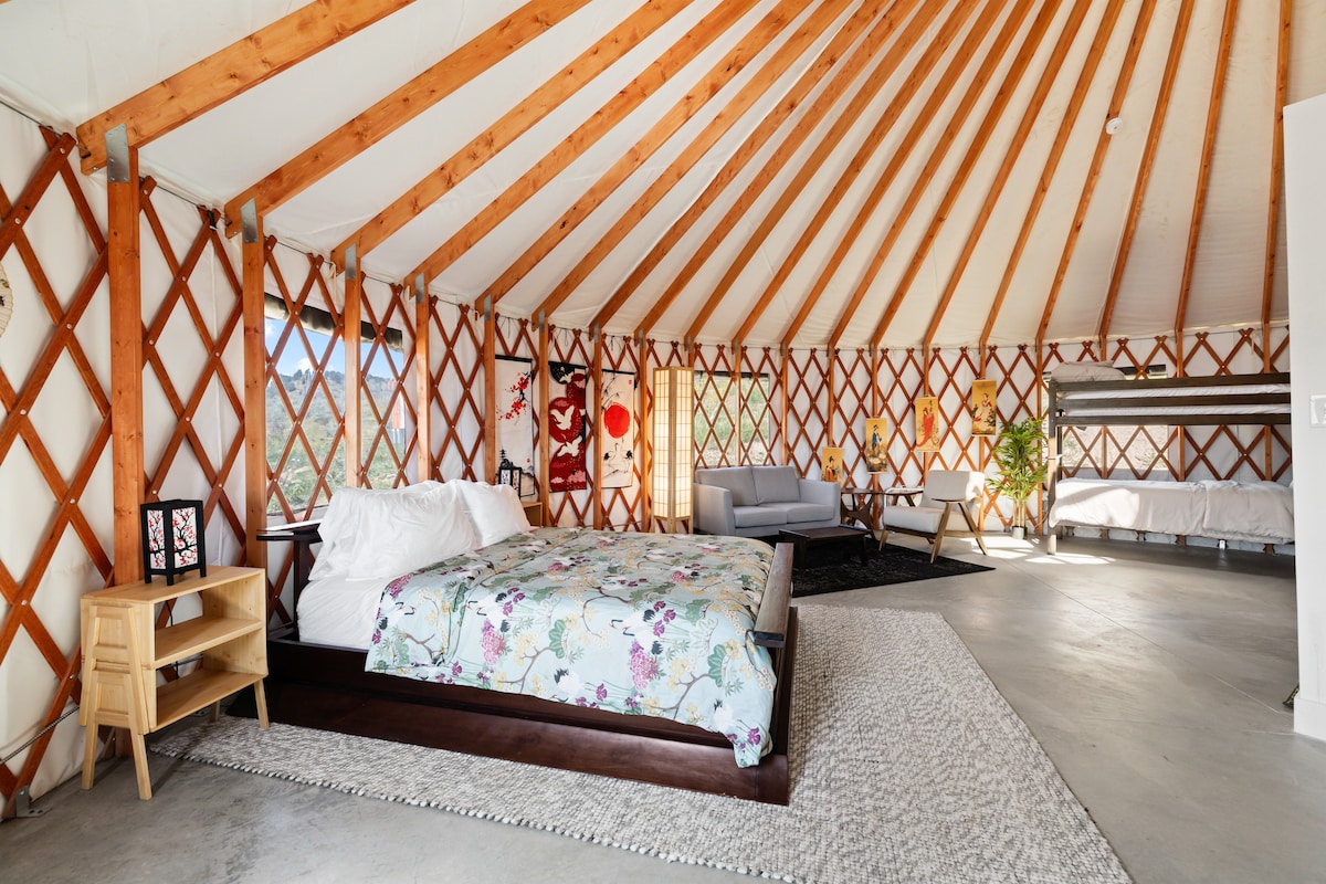 This gorgeous, owner-made, hand crafted, fully furnished YURT with mountain views, spectacular sunsets, and star gazing by the fire, you will be ready for great nights sleep snuggled under the puffy down comforter on the comfy queen bed. You'll be well rested for sure! There is a small fridge and a variety of coffee/tea/cocoa & treats, along with some paper products, also provided. Awesome get away or stop along your way, or just come & play!