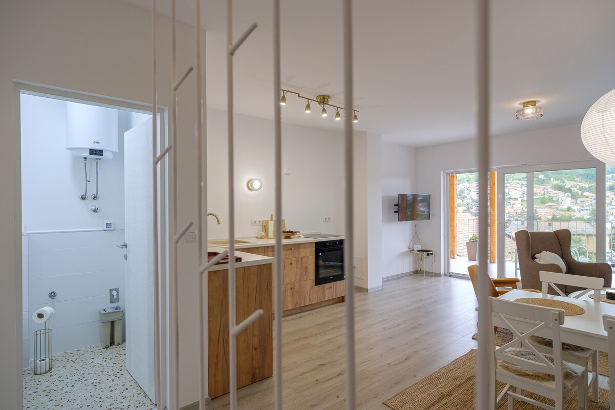 Uživajte u mirnom boravku iznad Sarajeva u privatnom stanu na padini sa zadivljujućim pogledom na grad. Smješten samo 10 minuta od centra grada automobilom ili taksijem, ovaj elegantni prostor nudi potpunu privatnost, privatni ulaz, bezbjedan parking, brzi Wi-Fi i baštu savršenu za opuštanje ili rad na daljinu. Prikladno za kućne ljubimce i idealno za porodice sa djecom, parove ili putnike koji putuju sami i traže mir i udobnost.