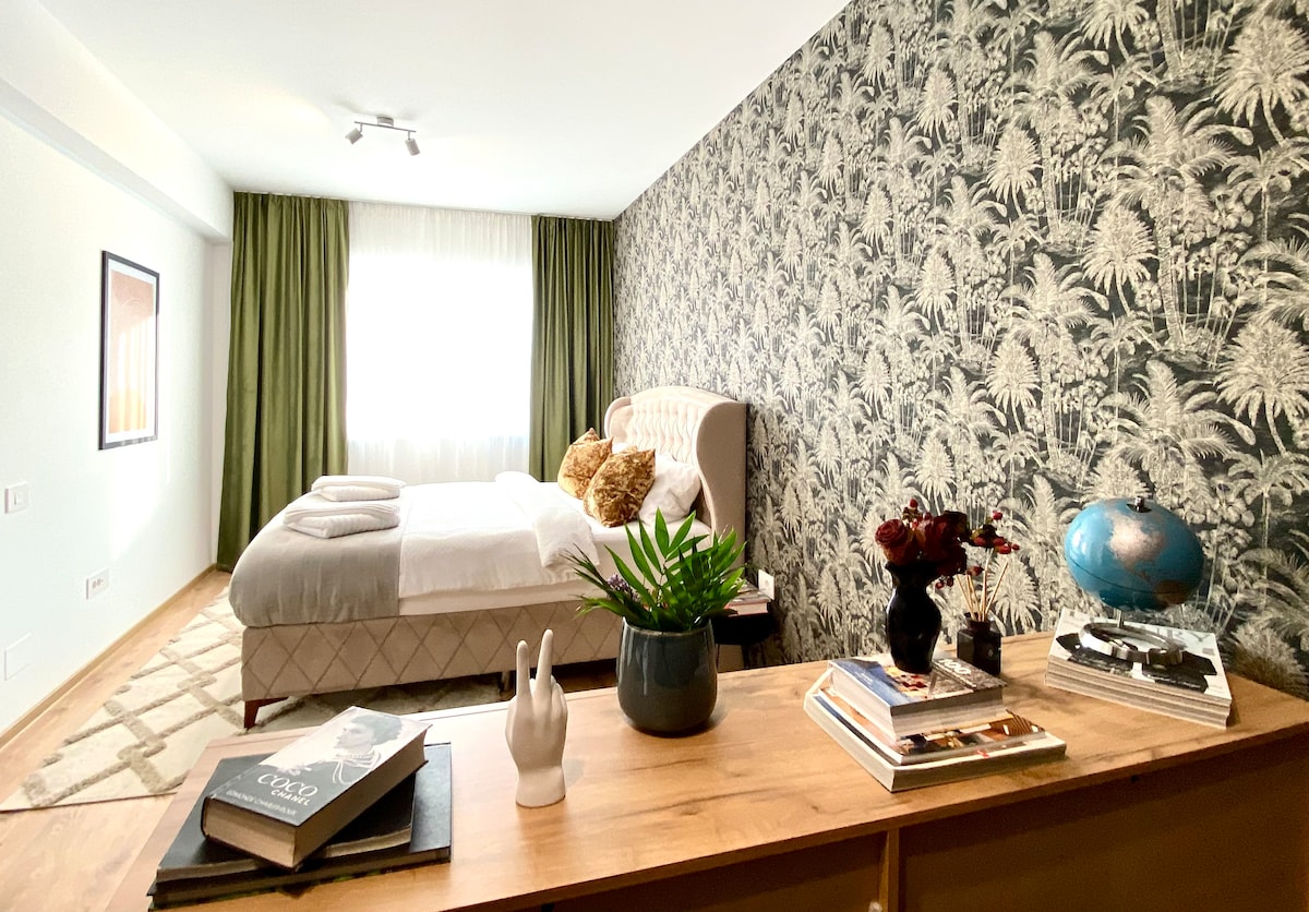 Dobro došli u novouređenu urbanu oazu u srcu živahnog centra grada Brašova. Doživite mirno utočište sa dekorom inspirisanim Balijem i modernom udobnošću. Samo 350 metara od istorijskih znamenitosti, modernih kafića i zanatskih butika, uključujući Council Square, Rope Street i Muzej umjetnosti.