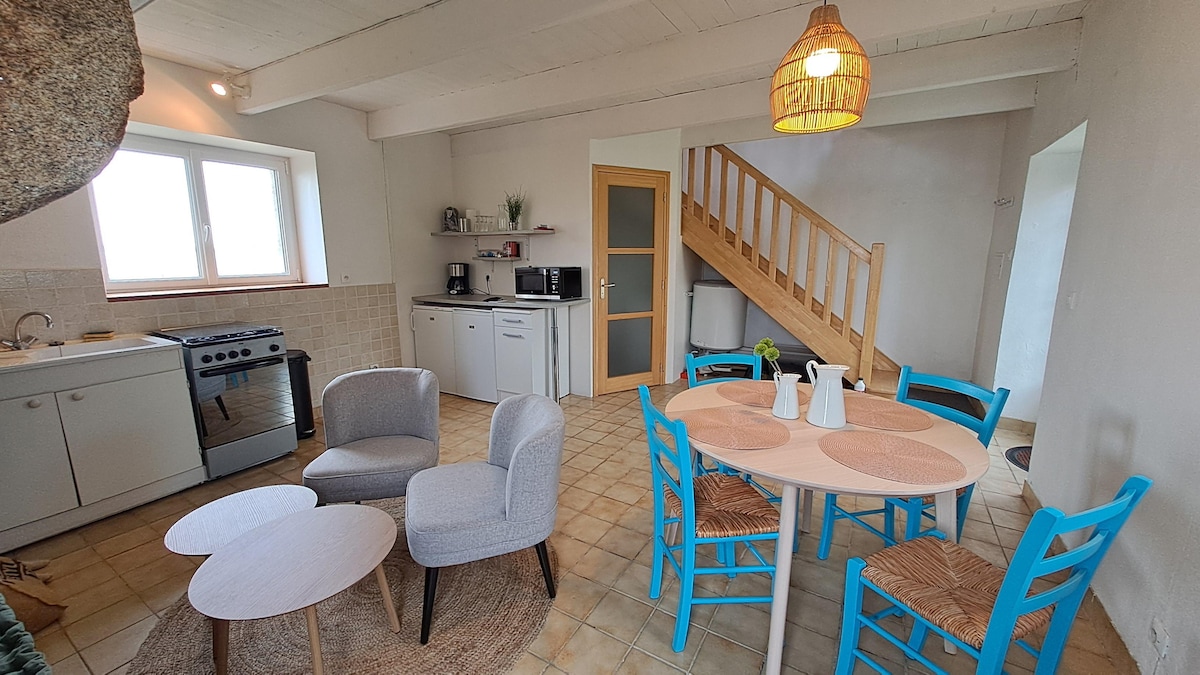 Nezavisni studio 20 m2 u bašti pored naše kuće, 3mn od plaže „Toul ar goret“ Krevet je napravljen po dolasku Na raspolaganju su kafa, čaj, šećer, puter od džema, začini. (u blizini kapele Ste Barbe) , 10 minuta hoda od centra grada do centra grada, 15 minuta hoda od luke Bloscon , 15 minuta od Ile de Batza Trajektna stanica, marina . Engleski i italijanski tečno govore