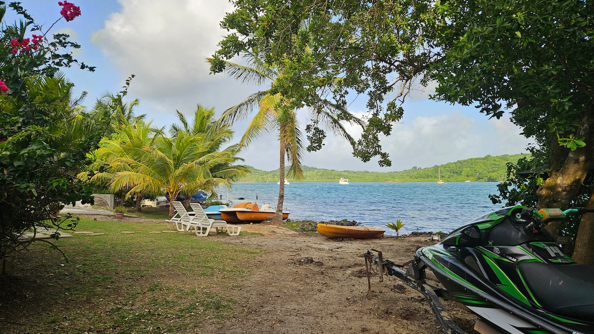 Šarmantni moderni nezavisni klimatizovani stan (322 kvadratnih stopa), vlasnička vila u prizemlju, drvena terasa uz obalu (160 kvadratnih stopa). Ovaj jedinstveni smještaj pruža izvanredan pogled na sidrište Grande anse d 'Arlet i direktan i besplatan pristup našem privatnom doku i moru. 3 minuta hoda od mirne plaže Grande anse duž naše privatne staze.