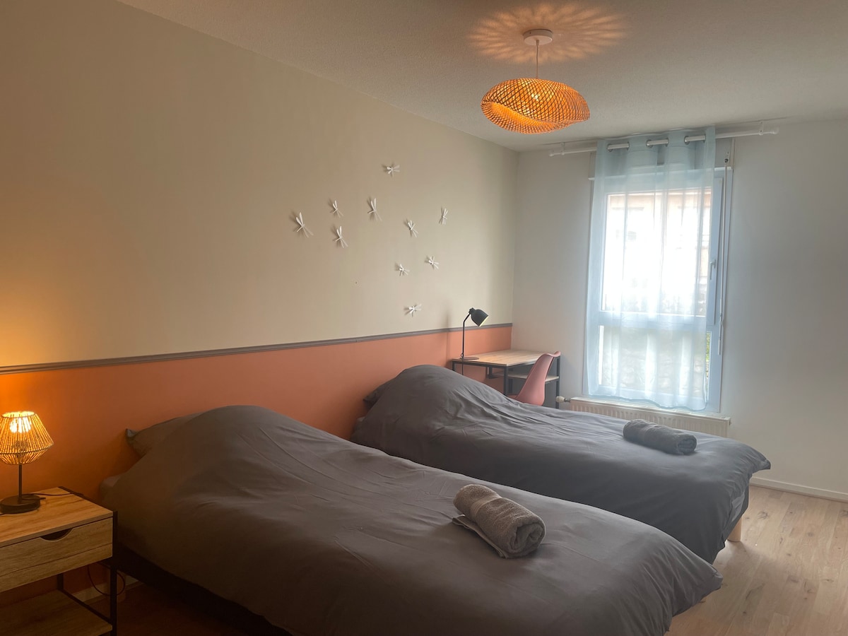 Dobro došli u naš studio sa Mišelinovim zvjezdicama 4 minuta od Futuroskopa, Akvaskopa i Arene! Savršen za romantičan boravak, naš udobni studio apartman ima udoban krevet i kadu. Mnogi obližnji restorani i preduzeća. Idealno mjesto za opuštajući i praktičan boravak, ovaj studio je savršeno utočište nakon dana avanture. Sve udobnosti su prisutne: posteljina, peškiri, šampon, kafa, mašina za pranje veša, Wi-Fi... Odlično! Radujemo se što ćete odsjesti kod nas!