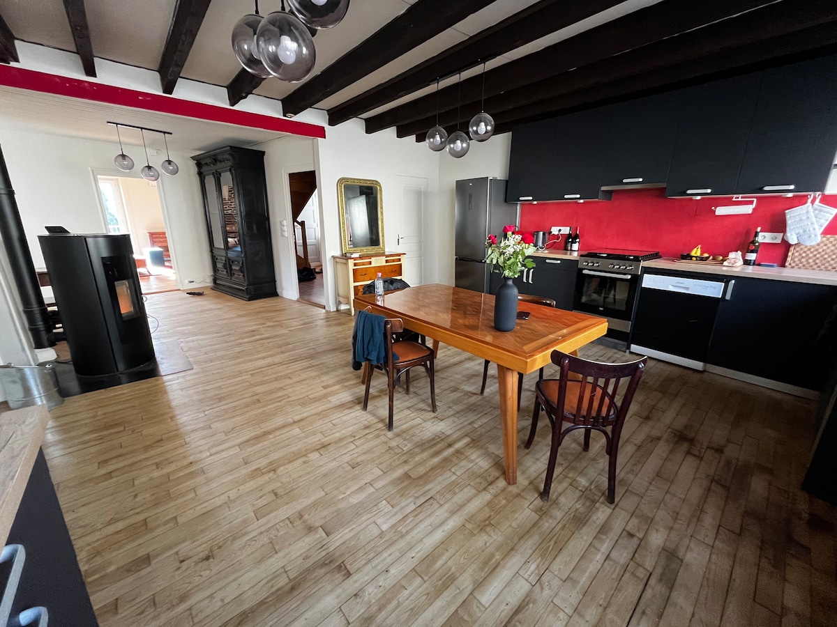 Ova prostrana, ukusno renovirana staja će vas očarati svojom lokacijom usred prirode, u netaknutom okruženju. Terasa od 28m² nudi jedinstvenu panoramu šume, uljuljkani ste zvukom potoka na dnu. Nema TV-a, ali ima knjiga. Svaki detalj je pažljivo osmišljen, sve je toplo. Ovaj smještaj površine 112 m², potpuno opremljen, sa 2 dvokrevetne spavaće sobe, velikim dnevnim boravkom sa umetkom, prelijepa bašta, mjesto je gdje je vrijeme suspendovano. Ne zanemareno.