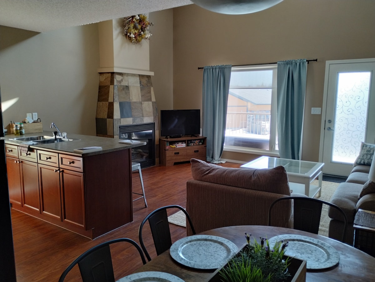 Dobro došli u ovaj svijetli i elegantni apartman koji se nalazi u Lakombu, sa jednostavnim pristupom stazama, prodavnicama u centru grada, biblioteci i drugim sadržajima. Osjećajte se kao kod kuće u otvorenoj kuhinji i dnevnom boravku. Prođite kroz francuska vrata i pronaći ćete udobnu spavaću sobu opremljenu kupatilom. Svjetla u dnevnom boravku i spavaćoj sobi koja se mogu prigušiti mogu odgovarati svakom raspoloženju, dok rasvjeta ispod ormarića pruža dovoljno svjetla za kuhinju ukrašenu frižiderom pune veličine i dvostrukim sudoperom.