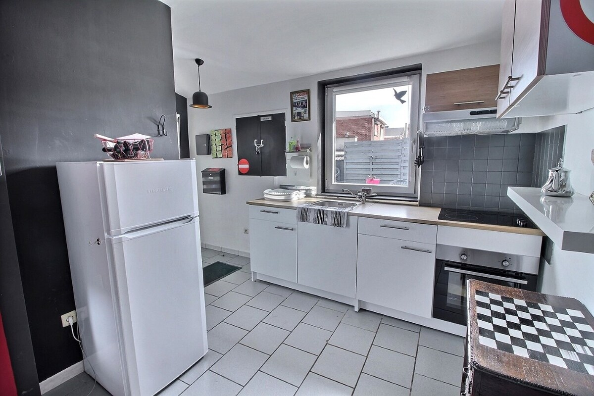 Venez partager notre logement atypique pour une nuit ou plus. Ajoutez-y la touche ludique avec un Escape Game des plus originaux. (En supplément, à réserver à l'avance) Profitez d'une ambiance surréaliste dans la ville de résidence d'enfance du Grand Peintre René Magritte. Le logement peut accueillir un maximum de 4 adultes et 2 enfants. Venez profiter d'une petite maison avec jardin et terrasse, entrée privée, parlophone et parking facile/gratuit sur la chaussée.