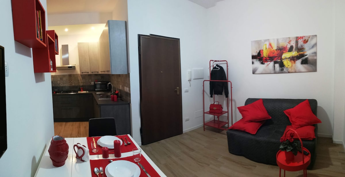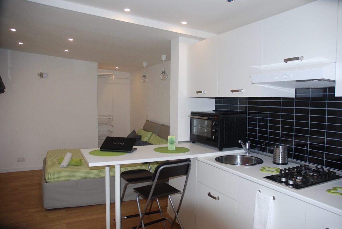 Potpuno novi studio apartman sa bračnim krevetom, kupatilom i kuhinjskim uglom. Nalazi se u prizemlju vile sa baštom i bazenom. Besplatan bazen od juna do septembra, moka kafa i čaj . Besplatan parking bez nadzora u blizini. Stanica Muratella trai, WFP, Technip na 750 m. Marriott Hotel i Sheraton Golf na 2 km ca.