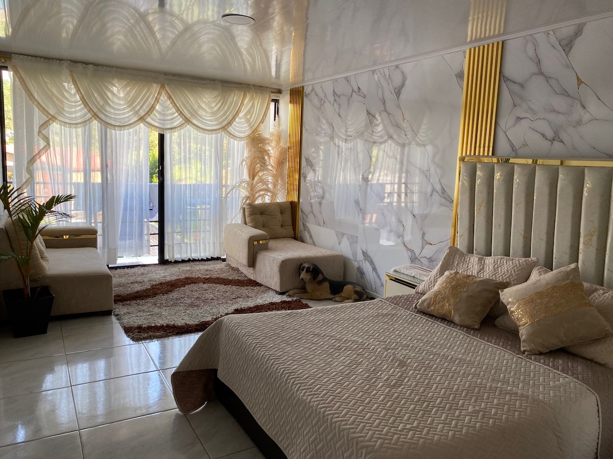 Uživajte u očaravajućem ambijentu ovog romantičnog mjesta u prirodi. Čarobno i glamurozno iskustvo, 15 minuta od istorijskog centra grada Popajan, 4 km preko Termales de Coconuco. Predivan pogled na pejzaž kafe, šumu, zvuk vode i ptica. Opremljen jacuzzijem, katamaranskom mrežom, luksuznim tušem, vinskom kavom, privatnim kupatilom, bračnim krevetom i luksuznim donjim vešom, doručak nije uključen. Usluga restorana i picerije.