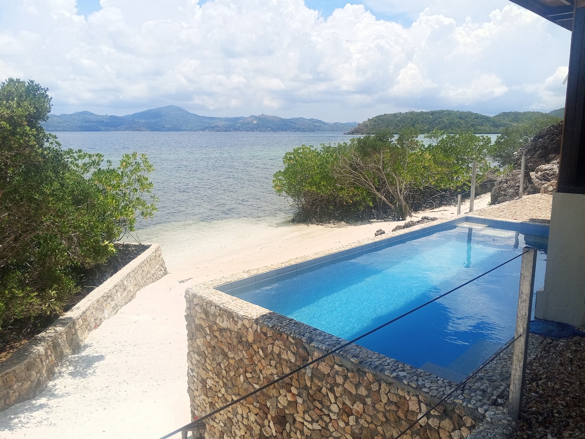 Welcome to Ocamocam Sunset Bay House. Enjoy this serene place on OcamOcam beach with a 130+sq meter infinity pool and 36M westward beachfront for the most beautiful sunsets. With only 3 units on this beautiful property, this 4 bedroom unit is perfect for spending time with your loved ones detached from the crowds of the city. Enjoy day trips to Black Island, Calauit Safari Park, Island hoping, or just relax by the pool, beach, kayaking, snorkeling, or paddle boarding. Paradise is waiting.