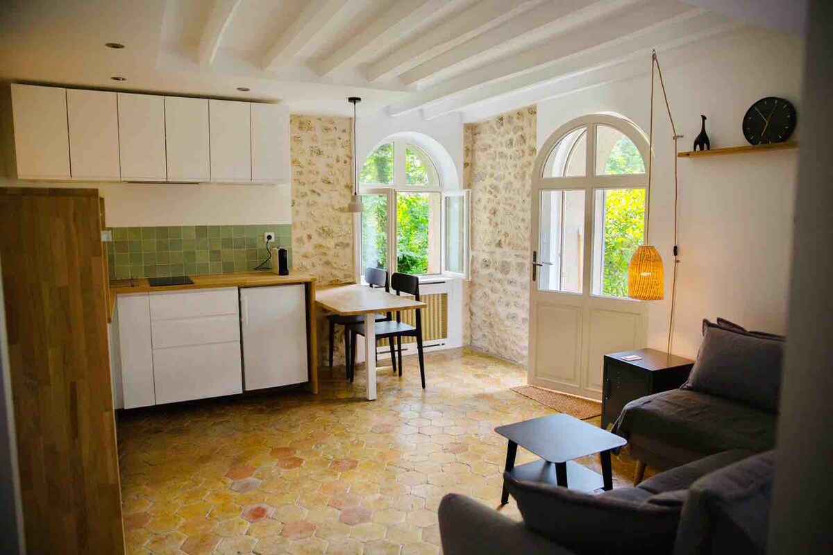 Priuštite sebi bezvremenski odmor u ovoj kamenoj garsonjeri sa zasvođenim plafonom, koja je kompletno renovirana i pažljivo uređena. Osmišljen za udobnost i opuštanje, ima privatni spa centar, udoban krevet i toplu atmosferu. S obzirom na to da se nalazi na 40 minuta od Pariza, ovaj smeštaj je savršen za romantični vikend, romantični odmor ili velnes boravak. Kombinujući autentičnost golih kamenova i moderne sadržaje, ova oaza nudi jedinstven i opuštajući doživljaj.