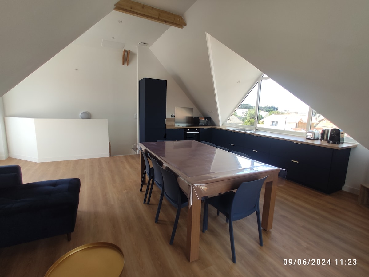 Uselila sam se u ovaj stan u januaru 2022. godine. Sve sam preuredio. Lokacija je savršena, 10 minuta hoda od pornichet centra ( bidule, terasa, carrefour market, boulangerie ) 15-20 minuta hoda od plaže. Mirna četvrt, vrlo prijateljski raspoložena. 1 spavaća soba 1 dnevna soba sa 1 sofom koja se može transformisati za 2 osobe. 1 kupatilo sa kadom i WC šolja je odvojena. 1 potpuno opremljena kuhinja Nema lifta, 2 stepenice. Na ulazu je kôd, vrlo zaštićen. TV (Netflix / Amazon / Disney +)