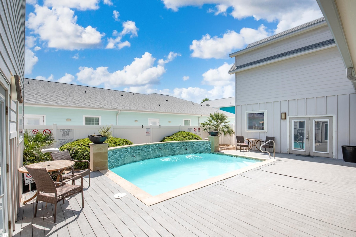 ★ “We had a wonderful time at this beautiful townhouse. There was a lot of room for us to move around and the pool was amazing! We will be back!” ★ • Crystal-clear shared pool + heated in winter • Stylish 3BR/3BA townhome sleeps 9 • Cozy living room w/ pull-out seats • Fully equipped kitchen • Spacious bedrooms • Golf cart-friendly + walking distance to downtown Port Aransas • Onsite washer + dryer • WiFi 4 mins → Port Aransas Beach 6 mins → The University of Texas Marine Science Institute